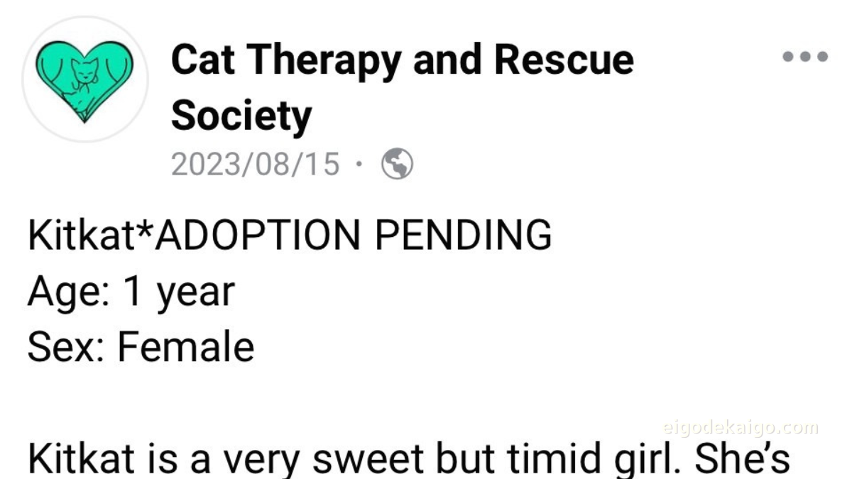 【体験談】Cat Therapy and Rescue Society で保護猫を迎えた流れ